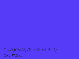 YUV 89.32,78.722,-2.912 Color is a light indigo color and the nearest color is Han Purple #5218fa. Hex code #563cf9 and RGB value is rgb(86,60,249). In RGB color space, this color is composed of 34% red, 24% green, 98% blue, In CMYK color space, this color is composed of 65% cyan, 76% magenta, 0% yellow , 2% black , In HSL color space, this color has a hue angle of 248° , 94% saturation and 61% lightness.