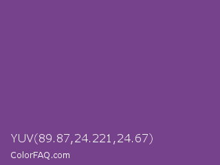 YUV 89.87,24.221,24.67 Color is a normal purple color and the nearest color is Affair #714693. Hex code #76428b and RGB value is rgb(118,66,139). In RGB color space, this color is composed of 46% red, 26% green, 55% blue, In CMYK color space, this color is composed of 15% cyan, 53% magenta, 0% yellow , 45% black , In HSL color space, this color has a hue angle of 283° , 36% saturation and 40% lightness.