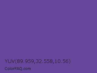YUV 89.959,32.558,10.56 Color is a normal violet color and the nearest color is Butterfly Bush #624e9a. Hex code #66479c and RGB value is rgb(102,71,156). In RGB color space, this color is composed of 40% red, 28% green, 61% blue, In CMYK color space, this color is composed of 35% cyan, 54% magenta, 0% yellow , 39% black , In HSL color space, this color has a hue angle of 262° , 37% saturation and 45% lightness.