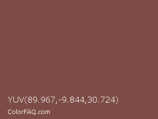 YUV 89.967,-9.844,30.724 Color is a normal red color and the nearest color is Tuscan Red #7c4848. Hex code #7d4c46 and RGB value is rgb(125,76,70). In RGB color space, this color is composed of 49% red, 30% green, 27% blue, In CMYK color space, this color is composed of 0% cyan, 39% magenta, 44% yellow , 51% black , In HSL color space, this color has a hue angle of 7° , 28% saturation and 38% lightness.