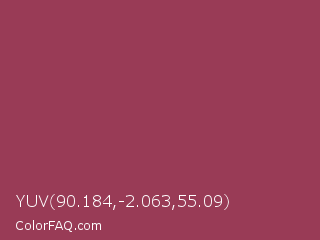 YUV 90.184,-2.063,55.09 Color is a normal rose color and the nearest color is Vin Rouge #983d61. Hex code #993b56 and RGB value is rgb(153,59,86). In RGB color space, this color is composed of 60% red, 23% green, 34% blue, In CMYK color space, this color is composed of 0% cyan, 61% magenta, 44% yellow , 40% black , In HSL color space, this color has a hue angle of 343° , 44% saturation and 42% lightness.