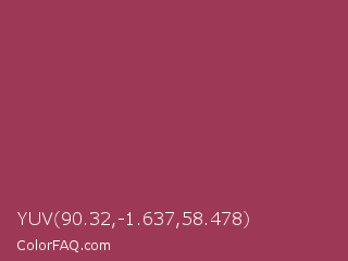 YUV 90.32,-1.637,58.478 Color is a normal rose color and the nearest color is Vin Rouge #983d61. Hex code #9d3957 and RGB value is rgb(157,57,87). In RGB color space, this color is composed of 62% red, 22% green, 34% blue, In CMYK color space, this color is composed of 0% cyan, 64% magenta, 45% yellow , 38% black , In HSL color space, this color has a hue angle of 342° , 47% saturation and 42% lightness.