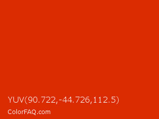 YUV 90.722,-44.726,112.5 Color is a normal red color and the nearest color is Grenadier #d54600. Hex code #db2b00 and RGB value is rgb(219,43,-0). In RGB color space, this color is composed of 86% red, 17% green, 0% blue, In CMYK color space, this color is composed of 0% cyan, 80% magenta, 100% yellow , 14% black , In HSL color space, this color has a hue angle of 12° , 100% saturation and 43% lightness.