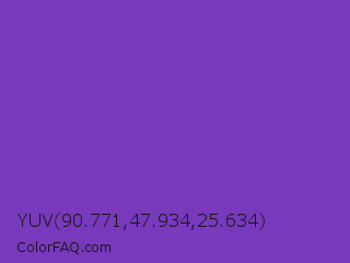 YUV 90.771,47.934,25.634 Color is a normal violet color and the nearest color is Studio #714ab2. Hex code #7839bc and RGB value is rgb(120,57,188). In RGB color space, this color is composed of 47% red, 22% green, 74% blue, In CMYK color space, this color is composed of 36% cyan, 70% magenta, 0% yellow , 26% black , In HSL color space, this color has a hue angle of 269° , 53% saturation and 48% lightness.