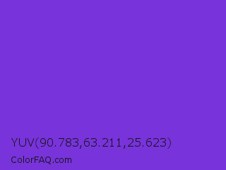 YUV 90.783,63.211,25.623 Color is a normal violet color and the nearest color is Blue Violet #8a2be2. Hex code #7833db and RGB value is rgb(120,51,219). In RGB color space, this color is composed of 47% red, 20% green, 86% blue, In CMYK color space, this color is composed of 45% cyan, 77% magenta, 0% yellow , 14% black , In HSL color space, this color has a hue angle of 265° , 70% saturation and 53% lightness.