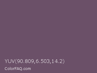 YUV 90.809,6.503,14.2 Color is a normal magenta color and the nearest color is Salt Box #685e6e. Hex code #6b5068 and RGB value is rgb(107,80,104). In RGB color space, this color is composed of 42% red, 31% green, 41% blue, In CMYK color space, this color is composed of 0% cyan, 25% magenta, 3% yellow , 58% black , In HSL color space, this color has a hue angle of 307° , 14% saturation and 37% lightness.