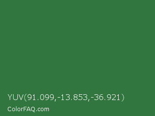 YUV 91.099,-13.853,-36.921 Color is a normal green color and the nearest color is Killarney #3a6a47. Hex code #31763f and RGB value is rgb(49,118,63). In RGB color space, this color is composed of 19% red, 46% green, 25% blue, In CMYK color space, this color is composed of 58% cyan, 0% magenta, 47% yellow , 54% black , In HSL color space, this color has a hue angle of 132° , 41% saturation and 33% lightness.