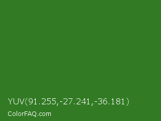 YUV 91.255,-27.241,-36.181 Color is a normal green color and the nearest color is Bilbao #327c14. Hex code #327b24 and RGB value is rgb(50,123,36). In RGB color space, this color is composed of 20% red, 48% green, 14% blue, In CMYK color space, this color is composed of 59% cyan, 0% magenta, 71% yellow , 52% black , In HSL color space, this color has a hue angle of 110° , 55% saturation and 31% lightness.