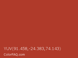 YUV 91.458,-24.383,74.143 Color is a normal red color and the nearest color is Sweet Brown #a83731. Hex code #b03a2a and RGB value is rgb(176,58,42). In RGB color space, this color is composed of 69% red, 23% green, 16% blue, In CMYK color space, this color is composed of 0% cyan, 67% magenta, 76% yellow , 31% black , In HSL color space, this color has a hue angle of 7° , 61% saturation and 43% lightness.