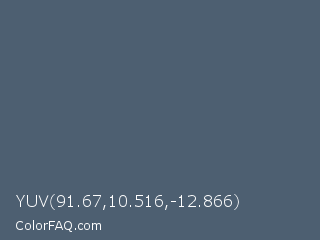 YUV 91.67,10.516,-12.866 Color is a normal blue color and the nearest color is Deep Space Sparkle #4a646c. Hex code #4d5f71 and RGB value is rgb(77,95,113). In RGB color space, this color is composed of 30% red, 37% green, 44% blue, In CMYK color space, this color is composed of 32% cyan, 16% magenta, 0% yellow , 56% black , In HSL color space, this color has a hue angle of 210° , 19% saturation and 37% lightness.