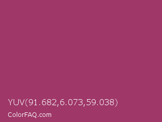 YUV 91.682,6.073,59.038 Color is a normal rose color and the nearest color is Rouge #a23b6c. Hex code #9f3768 and RGB value is rgb(159,55,104). In RGB color space, this color is composed of 62% red, 22% green, 41% blue, In CMYK color space, this color is composed of 0% cyan, 65% magenta, 35% yellow , 38% black , In HSL color space, this color has a hue angle of 332° , 49% saturation and 42% lightness.
