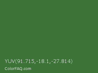 YUV 91.715,-18.1,-27.814 Color is a normal green color and the nearest color is Killarney #3a6a47. Hex code #3c7337 and RGB value is rgb(60,115,55). In RGB color space, this color is composed of 24% red, 45% green, 22% blue, In CMYK color space, this color is composed of 48% cyan, 0% magenta, 52% yellow , 55% black , In HSL color space, this color has a hue angle of 115° , 35% saturation and 33% lightness.