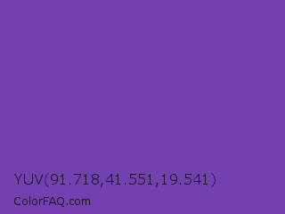 YUV 91.718,41.551,19.541 Color is a normal violet color and the nearest color is Studio #714ab2. Hex code #7240b0 and RGB value is rgb(114,64,176). In RGB color space, this color is composed of 45% red, 25% green, 69% blue, In CMYK color space, this color is composed of 35% cyan, 64% magenta, 0% yellow , 31% black , In HSL color space, this color has a hue angle of 267° , 47% saturation and 47% lightness.