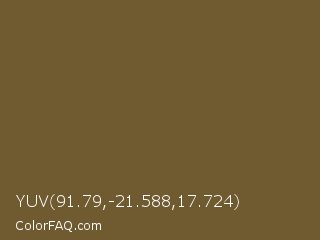 YUV 91.79,-21.588,17.724 Color is a normal orange color and the nearest color is Yellow Metal #716338. Hex code #705a30 and RGB value is rgb(112,90,48). In RGB color space, this color is composed of 44% red, 35% green, 19% blue, In CMYK color space, this color is composed of 0% cyan, 20% magenta, 57% yellow , 56% black , In HSL color space, this color has a hue angle of 39° , 40% saturation and 31% lightness.