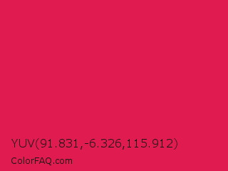 YUV 91.831,-6.326,115.912 Color is a normal rose color and the nearest color is Spanish Crimson #e51a4c. Hex code #e01b4f and RGB value is rgb(224,27,79). In RGB color space, this color is composed of 88% red, 11% green, 31% blue, In CMYK color space, this color is composed of 0% cyan, 88% magenta, 65% yellow , 12% black , In HSL color space, this color has a hue angle of 344° , 78% saturation and 49% lightness.