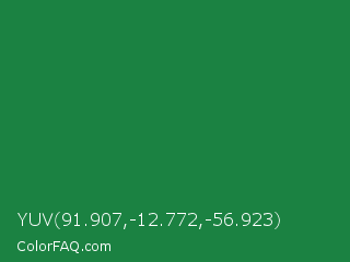 YUV 91.907,-12.772,-56.923 Color is a normal green color and the nearest color is Dark Spring Green #177245. Hex code #1b8242 and RGB value is rgb(27,130,66). In RGB color space, this color is composed of 11% red, 51% green, 26% blue, In CMYK color space, this color is composed of 79% cyan, 0% magenta, 49% yellow , 49% black , In HSL color space, this color has a hue angle of 143° , 66% saturation and 31% lightness.