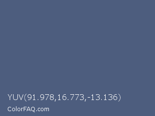 YUV 91.978,16.773,-13.136 Color is a normal blue color and the nearest color is Blue Bayoux #496679. Hex code #4d5d7e and RGB value is rgb(77,93,126). In RGB color space, this color is composed of 30% red, 36% green, 49% blue, In CMYK color space, this color is composed of 39% cyan, 26% magenta, 0% yellow , 51% black , In HSL color space, this color has a hue angle of 220° , 24% saturation and 40% lightness.