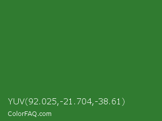 YUV 92.025,-21.704,-38.61 Color is a normal green color and the nearest color is Forest Green #228b22. Hex code #307b30 and RGB value is rgb(48,123,48). In RGB color space, this color is composed of 19% red, 48% green, 19% blue, In CMYK color space, this color is composed of 61% cyan, 0% magenta, 61% yellow , 52% black , In HSL color space, this color has a hue angle of 120° , 44% saturation and 34% lightness.