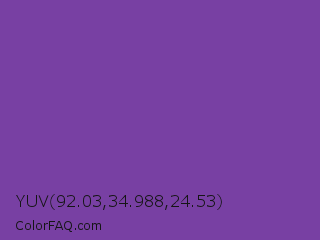 YUV 92.03,34.988,24.53 Color is a normal purple color and the nearest color is Royal Purple #6b3fa0. Hex code #7840a3 and RGB value is rgb(120,64,163). In RGB color space, this color is composed of 47% red, 25% green, 64% blue, In CMYK color space, this color is composed of 26% cyan, 61% magenta, 0% yellow , 36% black , In HSL color space, this color has a hue angle of 274° , 44% saturation and 45% lightness.