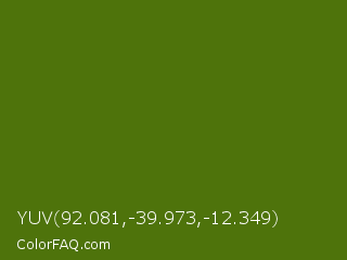 YUV 92.081,-39.973,-12.349 Color is a dark green color and the nearest color is Green Leaf #436a0d. Hex code #4e730b and RGB value is rgb(78,115,11). In RGB color space, this color is composed of 31% red, 45% green, 4% blue, In CMYK color space, this color is composed of 32% cyan, 0% magenta, 90% yellow , 55% black , In HSL color space, this color has a hue angle of 81° , 83% saturation and 25% lightness.