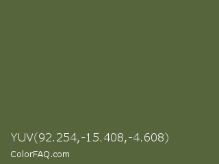 YUV 92.254,-15.408,-4.608 Color is a normal green color and the nearest color is Hemlock #5e5d3b. Hex code #57653d and RGB value is rgb(87,101,61). In RGB color space, this color is composed of 34% red, 40% green, 24% blue, In CMYK color space, this color is composed of 14% cyan, 0% magenta, 40% yellow , 60% black , In HSL color space, this color has a hue angle of 81° , 25% saturation and 32% lightness.