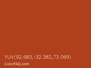 YUV 92.683,-32.382,73.069 Color is a normal red color and the nearest color is Chinese Red #aa381e. Hex code #b03f1b and RGB value is rgb(176,63,27). In RGB color space, this color is composed of 69% red, 25% green, 11% blue, In CMYK color space, this color is composed of 0% cyan, 64% magenta, 85% yellow , 31% black , In HSL color space, this color has a hue angle of 14° , 73% saturation and 40% lightness.