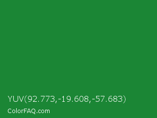 YUV 92.773,-19.608,-57.683 Color is a normal green color and the nearest color is Forest Green #228b22. Hex code #1b8635 and RGB value is rgb(27,134,53). In RGB color space, this color is composed of 11% red, 53% green, 21% blue, In CMYK color space, this color is composed of 80% cyan, 0% magenta, 60% yellow , 47% black , In HSL color space, this color has a hue angle of 135° , 66% saturation and 32% lightness.