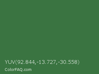 YUV 92.844,-13.727,-30.558 Color is a normal green color and the nearest color is Killarney #3a6a47. Hex code #3a7441 and RGB value is rgb(58,116,65). In RGB color space, this color is composed of 23% red, 45% green, 25% blue, In CMYK color space, this color is composed of 50% cyan, 0% magenta, 44% yellow , 55% black , In HSL color space, this color has a hue angle of 127° , 33% saturation and 34% lightness.