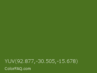 YUV 92.877,-30.505,-15.678 Color is a dark green color and the nearest color is Sap Green #507d2a. Hex code #4b721f and RGB value is rgb(75,114,31). In RGB color space, this color is composed of 29% red, 45% green, 12% blue, In CMYK color space, this color is composed of 34% cyan, 0% magenta, 73% yellow , 55% black , In HSL color space, this color has a hue angle of 88° , 57% saturation and 28% lightness.