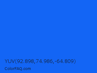 YUV 92.898,74.986,-64.809 Color is a normal blue color and the nearest color is Blue Ribbon #0066ff. Hex code #1365f5 and RGB value is rgb(19,101,245). In RGB color space, this color is composed of 7% red, 40% green, 96% blue, In CMYK color space, this color is composed of 92% cyan, 59% magenta, 0% yellow , 4% black , In HSL color space, this color has a hue angle of 218° , 92% saturation and 52% lightness.