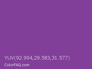 YUV 92.994,29.583,31.577 Color is a normal purple color and the nearest color is Vivid Violet #803790. Hex code #813f99 and RGB value is rgb(129,63,153). In RGB color space, this color is composed of 51% red, 25% green, 60% blue, In CMYK color space, this color is composed of 16% cyan, 59% magenta, 0% yellow , 40% black , In HSL color space, this color has a hue angle of 284° , 42% saturation and 42% lightness.