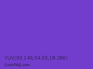 YUV 93.149,54.65,18.286 Color is a normal violet color and the nearest color is Purple Heart Crayola #652dc1. Hex code #723dcc and RGB value is rgb(114,61,204). In RGB color space, this color is composed of 45% red, 24% green, 80% blue, In CMYK color space, this color is composed of 44% cyan, 70% magenta, 0% yellow , 20% black , In HSL color space, this color has a hue angle of 262° , 58% saturation and 52% lightness.