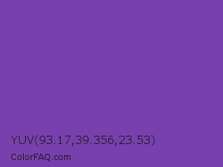 YUV 93.17,39.356,23.53 Color is a normal purple color and the nearest color is Studio #714ab2. Hex code #7840ad and RGB value is rgb(120,64,173). In RGB color space, this color is composed of 47% red, 25% green, 68% blue, In CMYK color space, this color is composed of 31% cyan, 63% magenta, 0% yellow , 32% black , In HSL color space, this color has a hue angle of 271° , 46% saturation and 46% lightness.