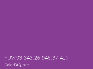 YUV 93.343,26.946,37.41 Color is a normal magenta color and the nearest color is Vivid Violet #803790. Hex code #883d94 and RGB value is rgb(136,61,148). In RGB color space, this color is composed of 53% red, 24% green, 58% blue, In CMYK color space, this color is composed of 8% cyan, 59% magenta, 0% yellow , 42% black , In HSL color space, this color has a hue angle of 292° , 42% saturation and 41% lightness.