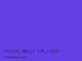 YUV 93.389,67.349,4.921 Color is a normal indigo color and the nearest color is Majorelle Blue #6050dc. Hex code #6340e6 and RGB value is rgb(99,64,230). In RGB color space, this color is composed of 39% red, 25% green, 90% blue, In CMYK color space, this color is composed of 57% cyan, 72% magenta, 0% yellow , 10% black , In HSL color space, this color has a hue angle of 253° , 77% saturation and 58% lightness.
