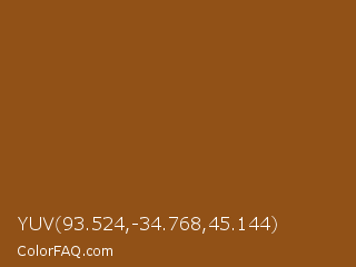 YUV 93.524,-34.768,45.144 Color is a normal orange color and the nearest color is Rope #8e4d1e. Hex code #915117 and RGB value is rgb(145,81,23). In RGB color space, this color is composed of 57% red, 32% green, 9% blue, In CMYK color space, this color is composed of 0% cyan, 44% magenta, 84% yellow , 43% black , In HSL color space, this color has a hue angle of 29° , 73% saturation and 33% lightness.