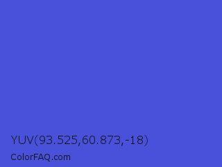 YUV 93.525,60.873,-18 Color is a normal blue color and the nearest color is Iris #5a4fcf. Hex code #4950d9 and RGB value is rgb(73,80,217). In RGB color space, this color is composed of 29% red, 31% green, 85% blue, In CMYK color space, this color is composed of 66% cyan, 63% magenta, 0% yellow , 15% black , In HSL color space, this color has a hue angle of 237° , 65% saturation and 57% lightness.