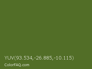 YUV 93.534,-26.885,-10.115 Color is a dark green color and the nearest color is Dark Olive Green #556b2f. Hex code #526e27 and RGB value is rgb(82,110,39). In RGB color space, this color is composed of 32% red, 43% green, 15% blue, In CMYK color space, this color is composed of 25% cyan, 0% magenta, 65% yellow , 57% black , In HSL color space, this color has a hue angle of 84° , 48% saturation and 29% lightness.