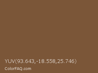 YUV 93.643,-18.558,25.746 Color is a normal orange color and the nearest color is Coyote Brown #81613c. Hex code #7b5638 and RGB value is rgb(123,86,56). In RGB color space, this color is composed of 48% red, 34% green, 22% blue, In CMYK color space, this color is composed of 0% cyan, 30% magenta, 54% yellow , 52% black , In HSL color space, this color has a hue angle of 27° , 37% saturation and 35% lightness.
