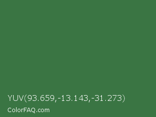 YUV 93.659,-13.143,-31.273 Color is a normal green color and the nearest color is Killarney #3a6a47. Hex code #3a7543 and RGB value is rgb(58,117,67). In RGB color space, this color is composed of 23% red, 46% green, 26% blue, In CMYK color space, this color is composed of 50% cyan, 0% magenta, 43% yellow , 54% black , In HSL color space, this color has a hue angle of 129° , 34% saturation and 34% lightness.