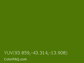 YUV 93.859,-43.314,-13.908 Color is a dark green color and the nearest color is Avocado #568203. Hex code #4e7706 and RGB value is rgb(78,119,6). In RGB color space, this color is composed of 31% red, 47% green, 2% blue, In CMYK color space, this color is composed of 34% cyan, 0% magenta, 95% yellow , 53% black , In HSL color space, this color has a hue angle of 82° , 90% saturation and 25% lightness.