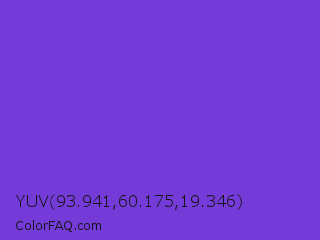 YUV 93.941,60.175,19.346 Color is a normal violet color and the nearest color is Blue Violet #8a2be2. Hex code #743bd8 and RGB value is rgb(116,59,216). In RGB color space, this color is composed of 45% red, 23% green, 85% blue, In CMYK color space, this color is composed of 46% cyan, 73% magenta, 0% yellow , 15% black , In HSL color space, this color has a hue angle of 262° , 67% saturation and 54% lightness.