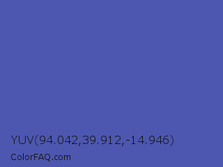 YUV 94.042,39.912,-14.946 Color is a normal blue color and the nearest color is Liberty #545aa7. Hex code #4d57af and RGB value is rgb(77,87,175). In RGB color space, this color is composed of 30% red, 34% green, 69% blue, In CMYK color space, this color is composed of 56% cyan, 50% magenta, 0% yellow , 31% black , In HSL color space, this color has a hue angle of 234° , 39% saturation and 49% lightness.