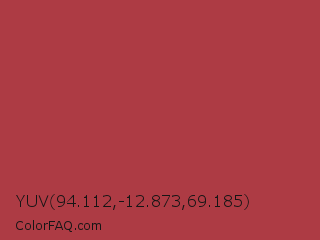 YUV 94.112,-12.873,69.185 Color is a normal red color and the nearest color is Medium Carmine #af4035. Hex code #ad3b44 and RGB value is rgb(173,59,68). In RGB color space, this color is composed of 68% red, 23% green, 27% blue, In CMYK color space, this color is composed of 0% cyan, 66% magenta, 61% yellow , 32% black , In HSL color space, this color has a hue angle of 355° , 49% saturation and 45% lightness.