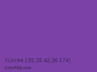 YUV 94.155,35.42,26.174 Color is a normal purple color and the nearest color is Royal Purple #7851a9. Hex code #7c41a6 and RGB value is rgb(124,65,166). In RGB color space, this color is composed of 49% red, 25% green, 65% blue, In CMYK color space, this color is composed of 25% cyan, 61% magenta, 0% yellow , 35% black , In HSL color space, this color has a hue angle of 275° , 44% saturation and 45% lightness.