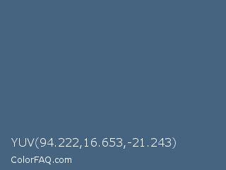 YUV 94.222,16.653,-21.243 Color is a normal blue color and the nearest color is Blue Bayoux #496679. Hex code #466480 and RGB value is rgb(70,100,128). In RGB color space, this color is composed of 27% red, 39% green, 50% blue, In CMYK color space, this color is composed of 45% cyan, 22% magenta, 0% yellow , 50% black , In HSL color space, this color has a hue angle of 209° , 29% saturation and 39% lightness.