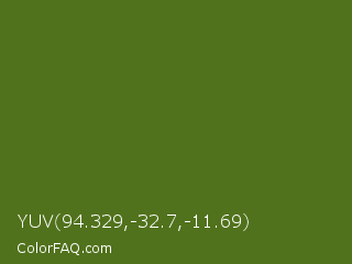 YUV 94.329,-32.7,-11.69 Color is a dark green color and the nearest color is Sap Green #507d2a. Hex code #51721c and RGB value is rgb(81,114,28). In RGB color space, this color is composed of 32% red, 45% green, 11% blue, In CMYK color space, this color is composed of 29% cyan, 0% magenta, 75% yellow , 55% black , In HSL color space, this color has a hue angle of 83° , 61% saturation and 28% lightness.