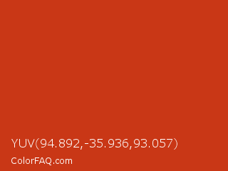YUV 94.892,-35.936,93.057 Color is a normal red color and the nearest color is Dark Pastel Red #c23b22. Hex code #c93716 and RGB value is rgb(201,55,22). In RGB color space, this color is composed of 79% red, 22% green, 9% blue, In CMYK color space, this color is composed of 0% cyan, 73% magenta, 89% yellow , 21% black , In HSL color space, this color has a hue angle of 11° , 80% saturation and 44% lightness.