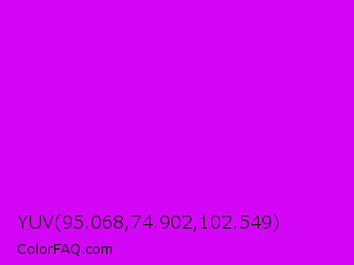 YUV 95.068,74.902,102.549 Color is a normal purple color and the nearest color is Vivid Orchid #cc00ff. Hex code #d406f7 and RGB value is rgb(212,6,247). In RGB color space, this color is composed of 83% red, 2% green, 97% blue, In CMYK color space, this color is composed of 14% cyan, 98% magenta, 0% yellow , 3% black , In HSL color space, this color has a hue angle of 291° , 95% saturation and 50% lightness.