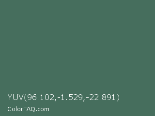 YUV 96.102,-1.529,-22.891 Color is a normal green color and the nearest color is Finlandia #556d56. Hex code #466e5d and RGB value is rgb(70,110,93). In RGB color space, this color is composed of 27% red, 43% green, 36% blue, In CMYK color space, this color is composed of 36% cyan, 0% magenta, 15% yellow , 57% black , In HSL color space, this color has a hue angle of 155° , 22% saturation and 35% lightness.
